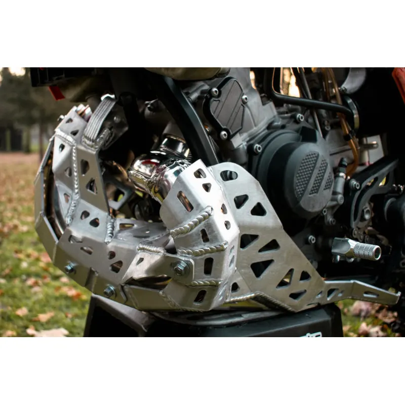 Kryt pod motor+gajdy KTM EXC XC-W 150 20-23. Tento kryt pod motor nechráni len motor samotný, ale taktiež aj ľudovo nazývané „gajdy“ ktorými disponujú všetky 2T motocykle. Takže už viac žiadne prerazené alebo ohnuté gajdy od kameňov, koreňov a iných nástrah ktoré prináša enduro.