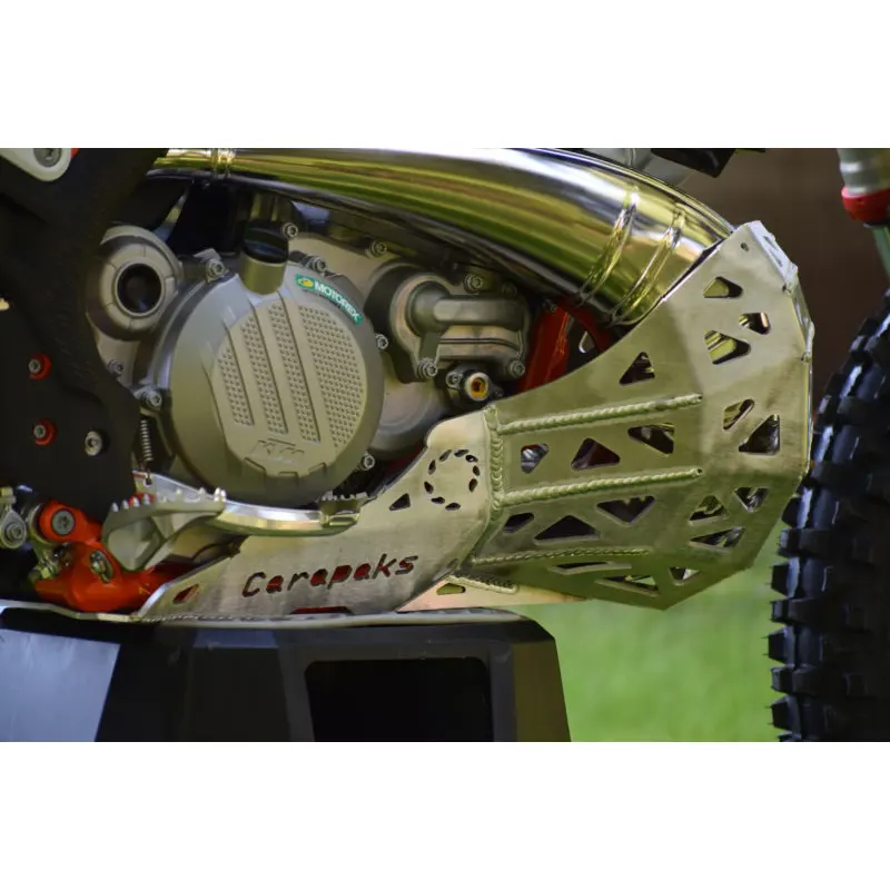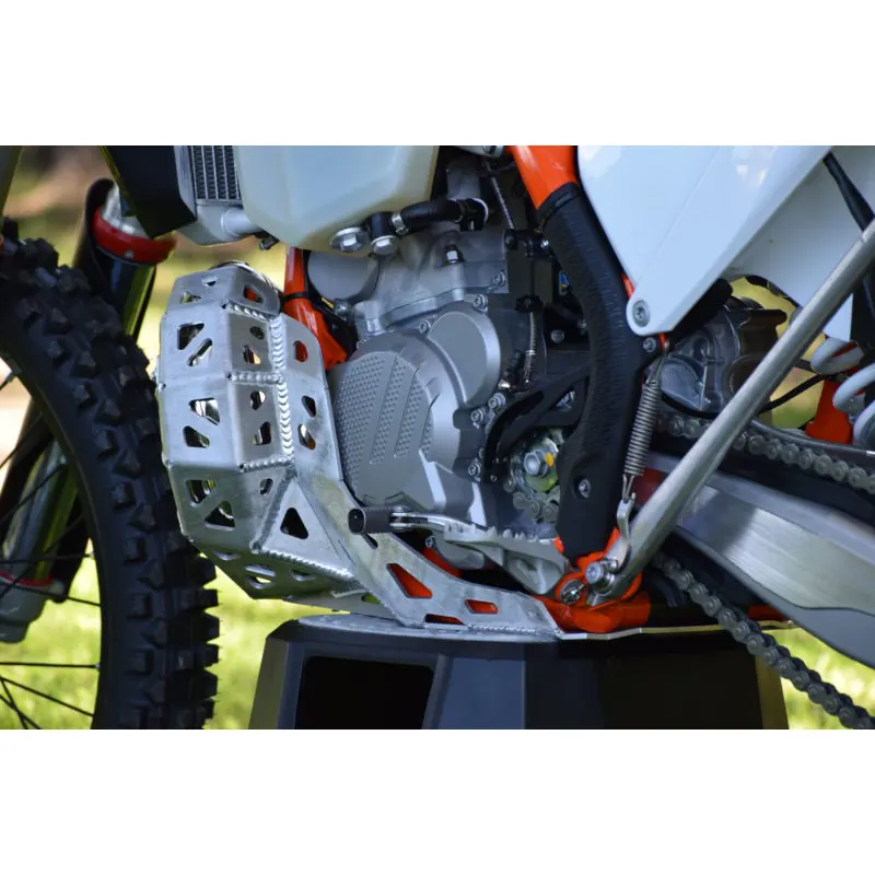 Kryt pod motor+gajdy KTM EXC/XC-W 250/300 20-23, XC 250/300 19-22. Tento kryt pod motor nechráni len motor samotný, ale taktiež aj ľudovo nazývané „gajdy“ ktorými disponujú všetky 2T motocykle. Takže už viac žiadne prerazené alebo ohnuté gajdy od kameňov, koreňov a iných nástrah ktoré prináša enduro.