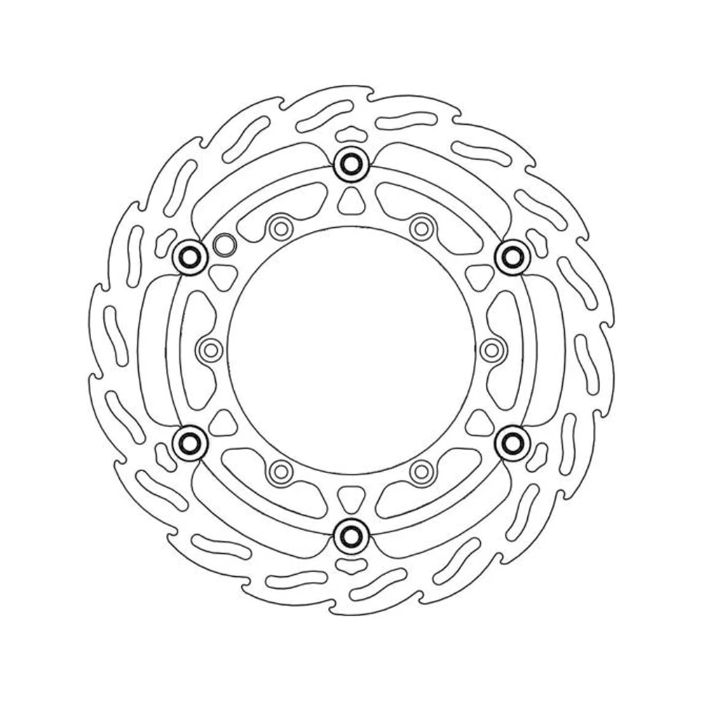 Predný brzdový 270 mm kit Moto-Master – plávajúci Flame kotúč s čiernym eloxovaným unášačom, ľahkými nerezovými plavákmi a nerezovou časťou v tvare plameňa.